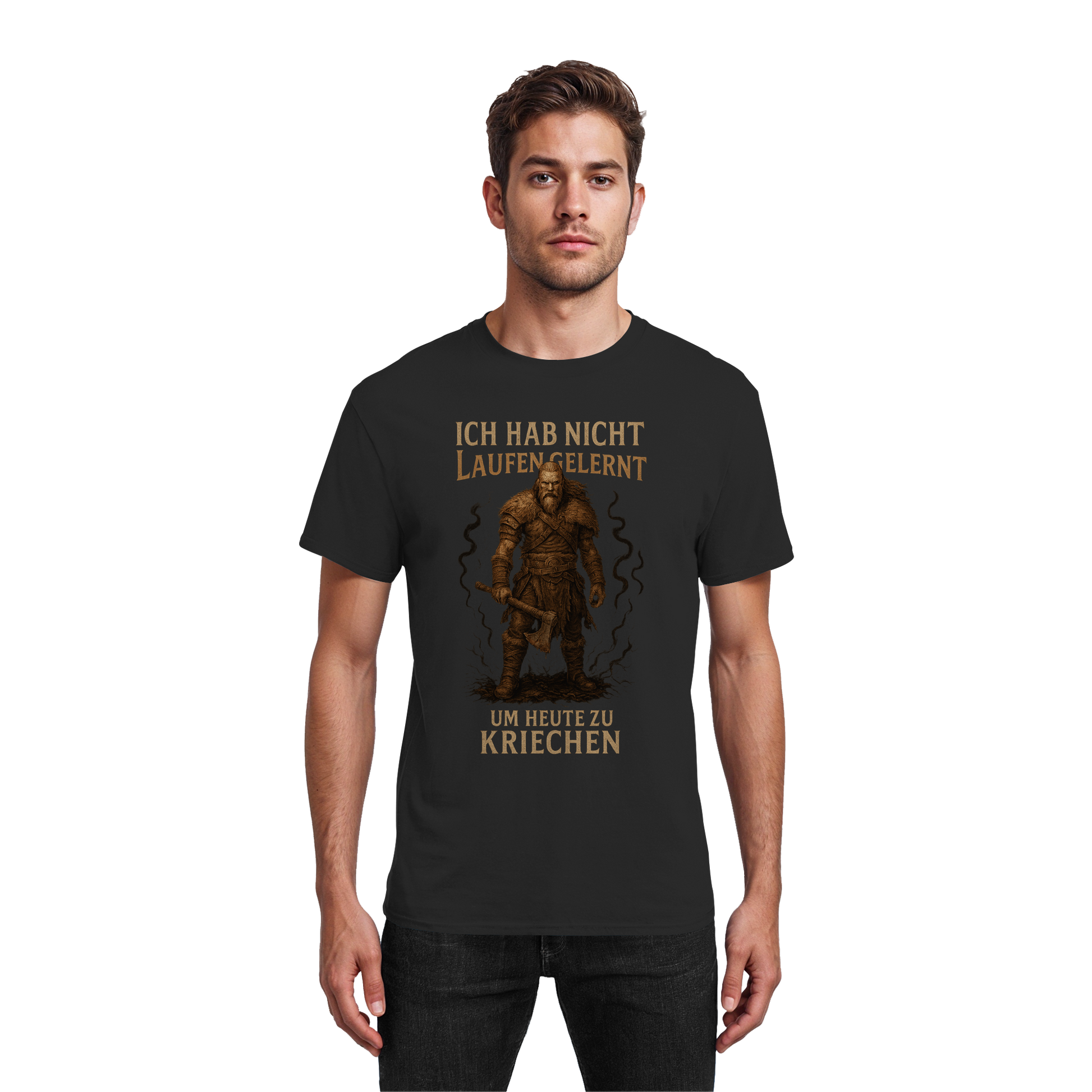 Die kraftvolle Optik mit Axt, Bart und einer furchtlosen Haltung spricht echte Kämpfer an. Das Design passt ideal zu einem starken Mindset voller Ehrgeiz, Willensstärke und Disziplin. Zeige deinen Stolz und sende eine klare Botschaft: Du kriechst nicht – du gehst deinen Weg mit erhobenem Haupt.